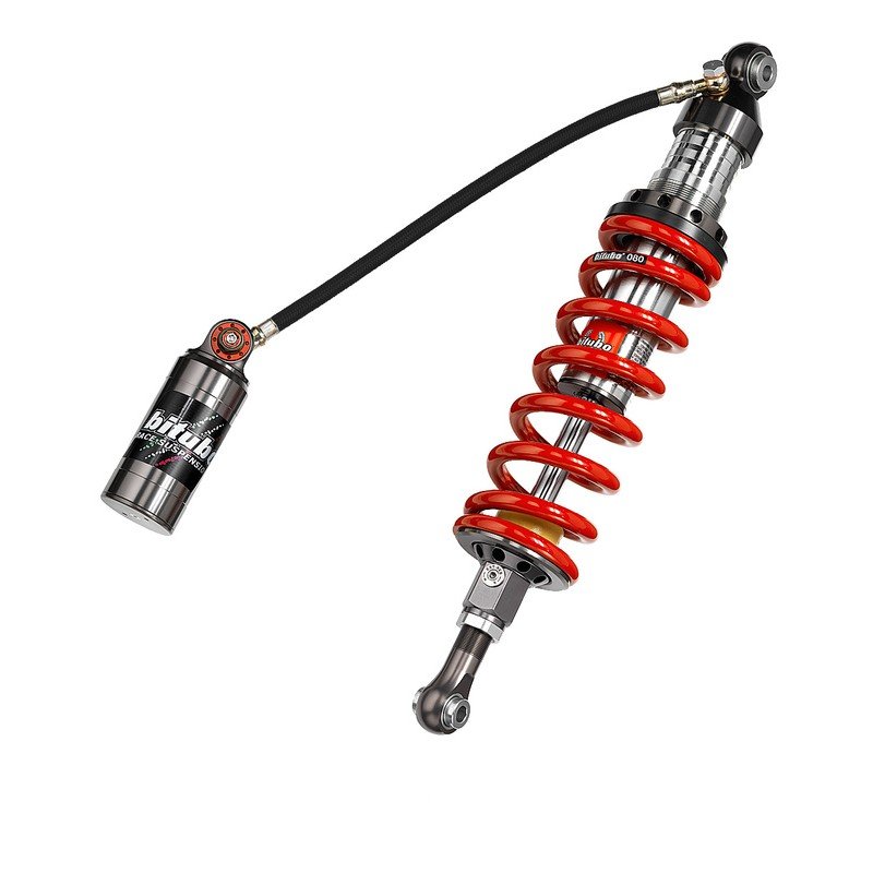 Elle est reliée par un tube flexible en tresse métallique chemisée conçu pour de très hautes pressions, pour améliorer la réponse de l’amortisseur en augmentant l’adhérence et le confort.