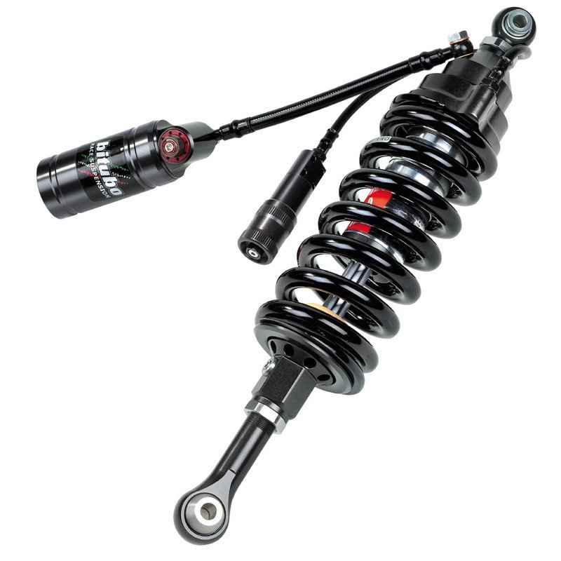 Elle est reliée par un tube flexible en tresse métallique chemisée conçu pour de très hautes pressions, pour améliorer la réponse de l’amortisseur en augmentant l’adhérence et le confort.