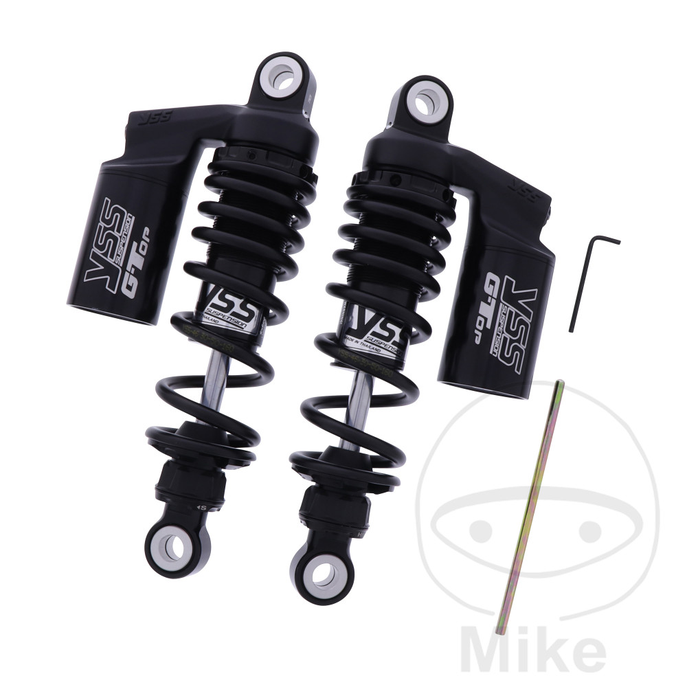Corps en aluminium fraisé, amortisseur réglable en précharge du ressort, en rebond (30 clics) et en compression (30 clics).