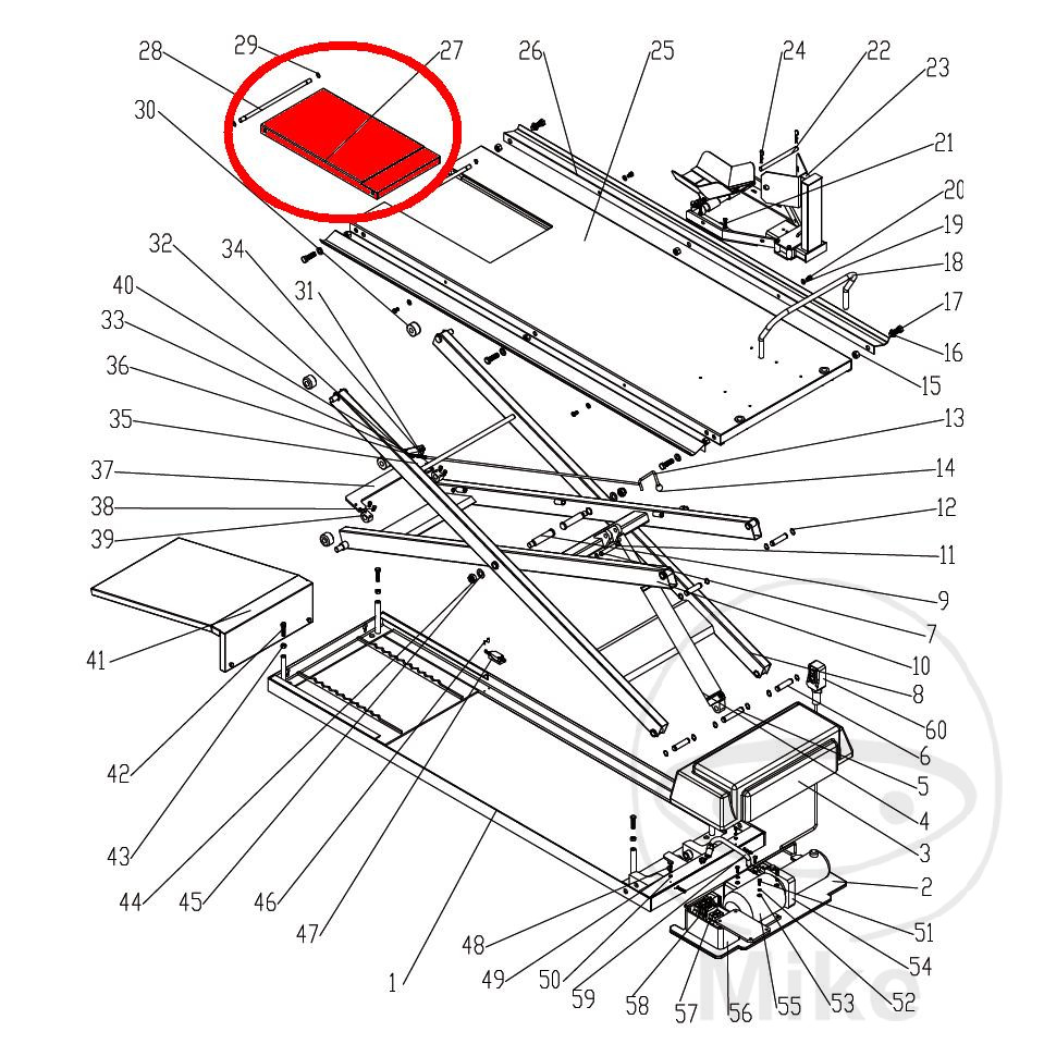 Pièce de rechange, convient pour l’élévateur électro-hydraulique pour motos JMP 500 / LUX