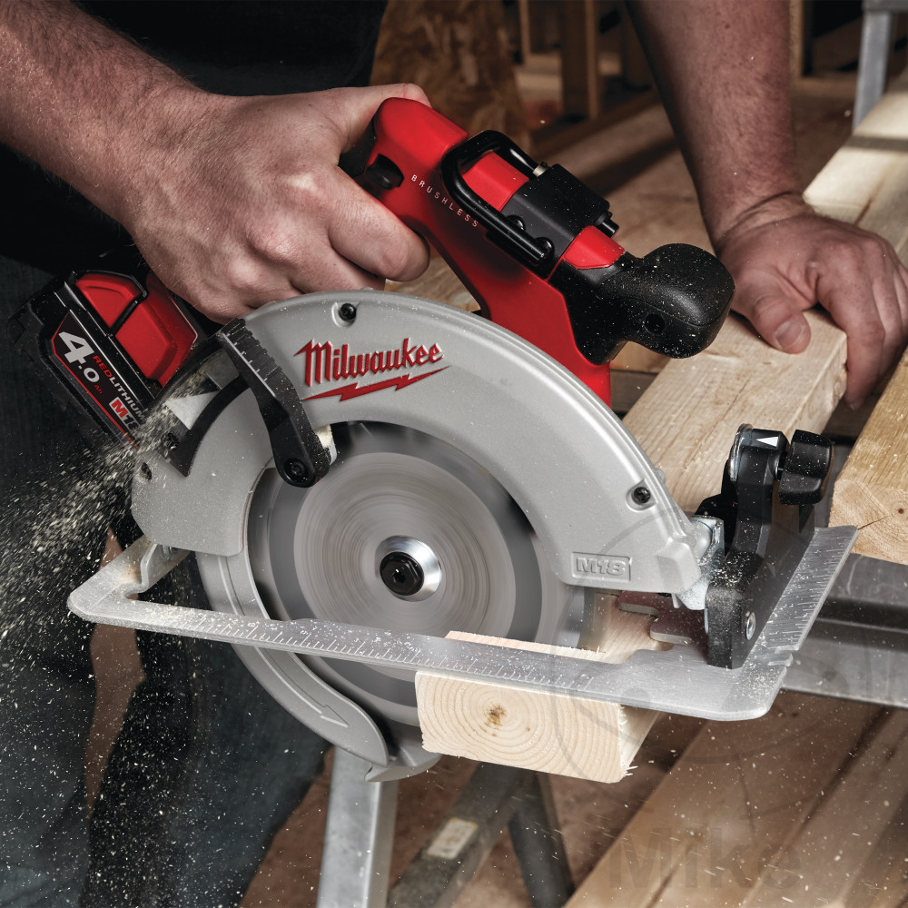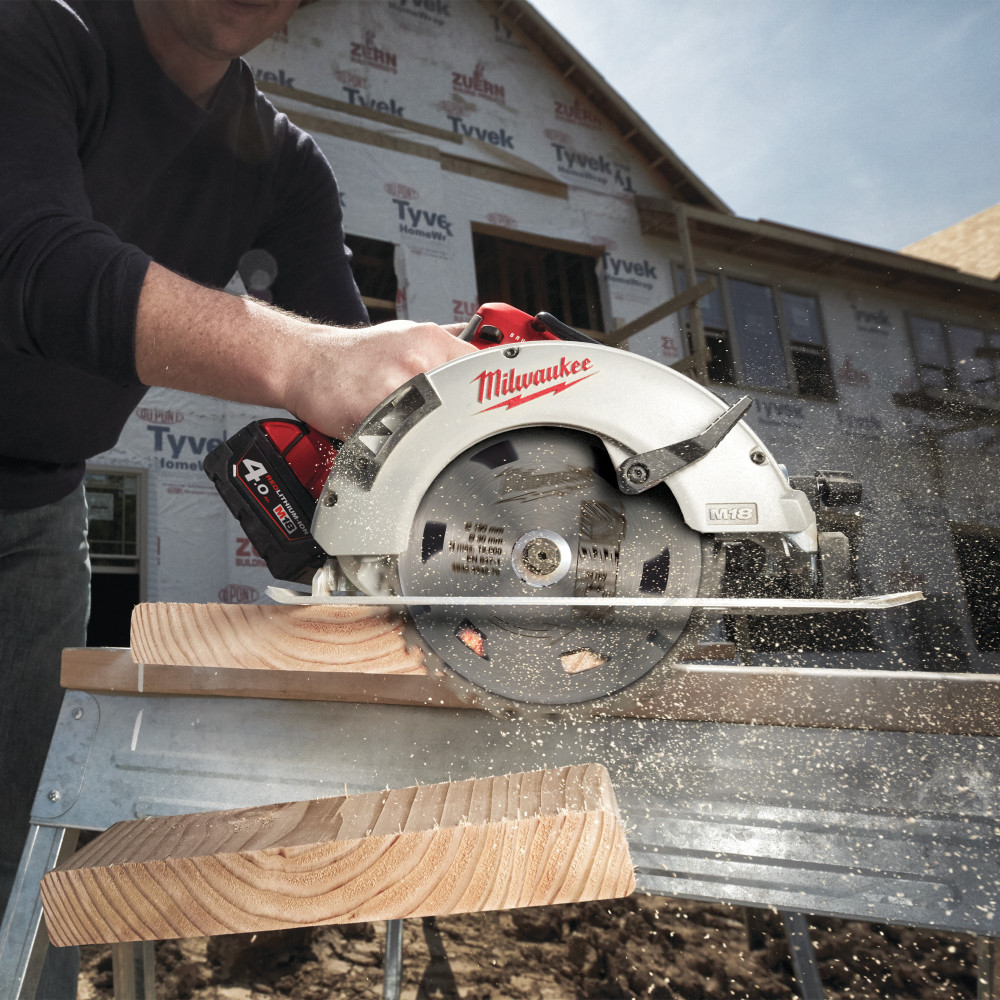 – Scie circulaire manuelle sans fil sans balais avec profondeur de coupe de 66 mm pour la découpe simultanée de jusqu’à 3 panneaux OSB (19 mm)