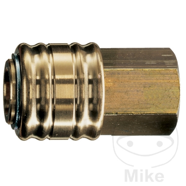 Raccord rapide à une main avec verrouillage par rouleau. Clapet anti-retour dans le raccord. Fiche sans clapet anti-retour.