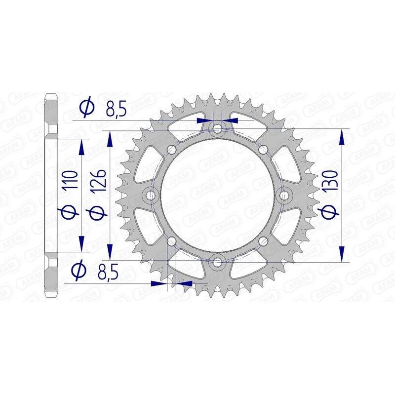Les couronnes alu AFAM sont fabriquées à partir d’un alliage associant poids réduit et résistance. La qualité d’usinage et la précision du taillage font d’AFAM une référence mondiale incontournable pour les éléments de transmission moto.