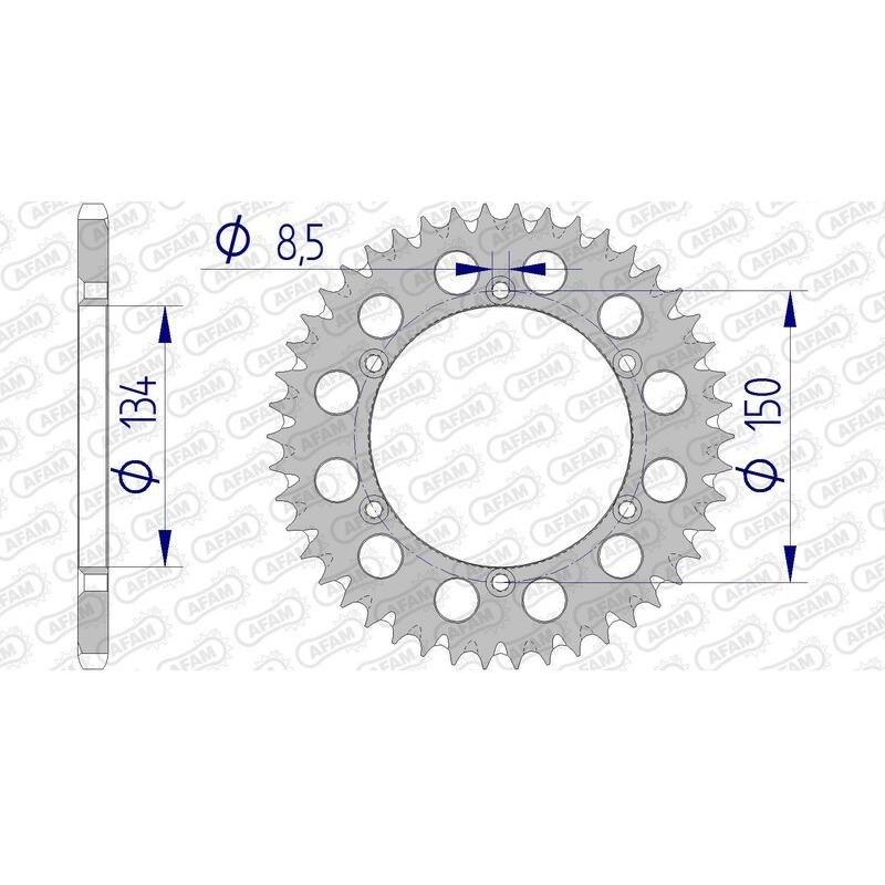 Les couronnes alu AFAM sont fabriquées à partir d’un alliage associant poids réduit et résistance. La qualité d’usinage et la précision du taillage font d’AFAM une référence mondiale incontournable pour les éléments de transmission moto.