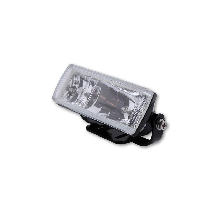 Phare antibrouillard et antibrouillard avec boîtier en métal noir et verre transparent : Le support est à trous oblongs et peut être monté suspendu ou debout, E-examiné.