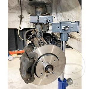 soutient la jambe de suspension sur le véhicule jusqu’à 500 kgs’adapte aux crics de boîte de vitesses 500 kg avec piston de 30 mmmâchoires de serrage en POM (polyoxyméthylène)réglage de la profondeur et de l’inclinaisonidéal pour les véhicules modernes avec double bras de suspensionutilisation également sur les véhicules électriques Tesla, Zoe, Leaf, Hyundai, Kia, etc.travaille en toute sécuritéplacement facile et sûrpeut être utilisé aussi bien à droite qu’à gaucheréglage axial en 5 étapesarticulation à 120 degrés pour s’adapter à la géométrie de la suspensionoutil brevetépoids : 4,9 kgdimensions : 300 x 250 x 90 mm
