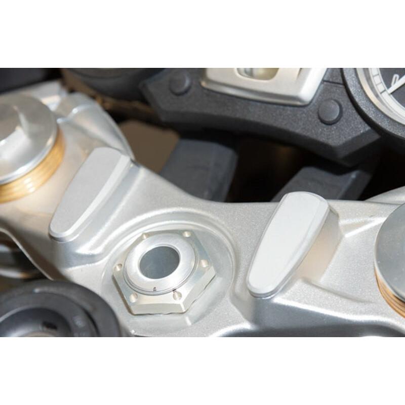 Les bracelets relevés rehaussent les guidons au-dessus du té de fourche. Proposant un compromis à tous ceux qui souhaitent conserver le look Racing de leur machine tout en gardant un confort de pilotage.