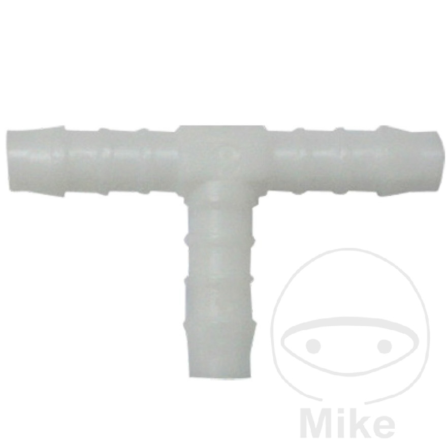 en forme de T. Par exemple pour le raccordement des tuyaux de carburant ou de liquide de refroidissement, etc.
