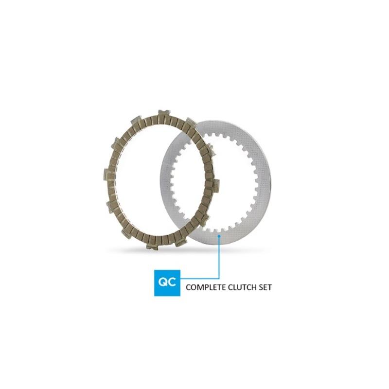 Les embrayages Pro Race représentent le haut de gamme. Ils sont le résultat de la recherche sur de nouvelles technologies combinées à des matériaux innovants développés en collaboration avec des équipes prestigieuses de Superbike, Moto3 et MXGP. Le matériau de friction est principalement composé de cellulose, de résines, de carbone et d’autres éléments garantissant un coefficient de friction extrêmement élevé et une compression minimale. Le design particulier des « encoches séparées » améliore le flux d’huile, permettant aux plaques de fonctionner avec plus d’efficacité. La combinaison de ce design avec le nouveau matériau de friction augmente la résistance à la fatigue et garantit une stabilité maximale en fonctionnement, même en conditions extrêmes, faisant de l’embrayage Pro Race un produit de compétition de très haute qualité.