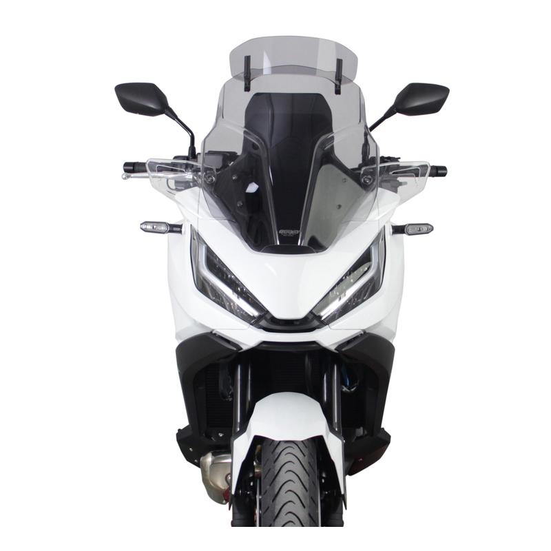 Variotouringscreen VTM The NT1100 I would like to follow in the footsteps of the Pan European and the Deauville and gives itself emphatically road-focused. Honda attaches great importance to good wind protection ex works: the additional deflectors are intended to protect riders from the wind on the arms and lower body. If you replace the original windshield with the MRA Variotourin windshield with seven-way adjustable spoiler, the added value quickly becomes noticeable: The add-on spoiler allows the airflow between the windshield and VT spoiler to be more or less fanned out, which further reduces wind pressure without creating turbulence. Optimal conditions for relaxed driving, even on long tours. The Variotouring lens is available in clear and smoke gray and all mounting hardware is included. The 5-stage height and angle adjustment is of course retained.