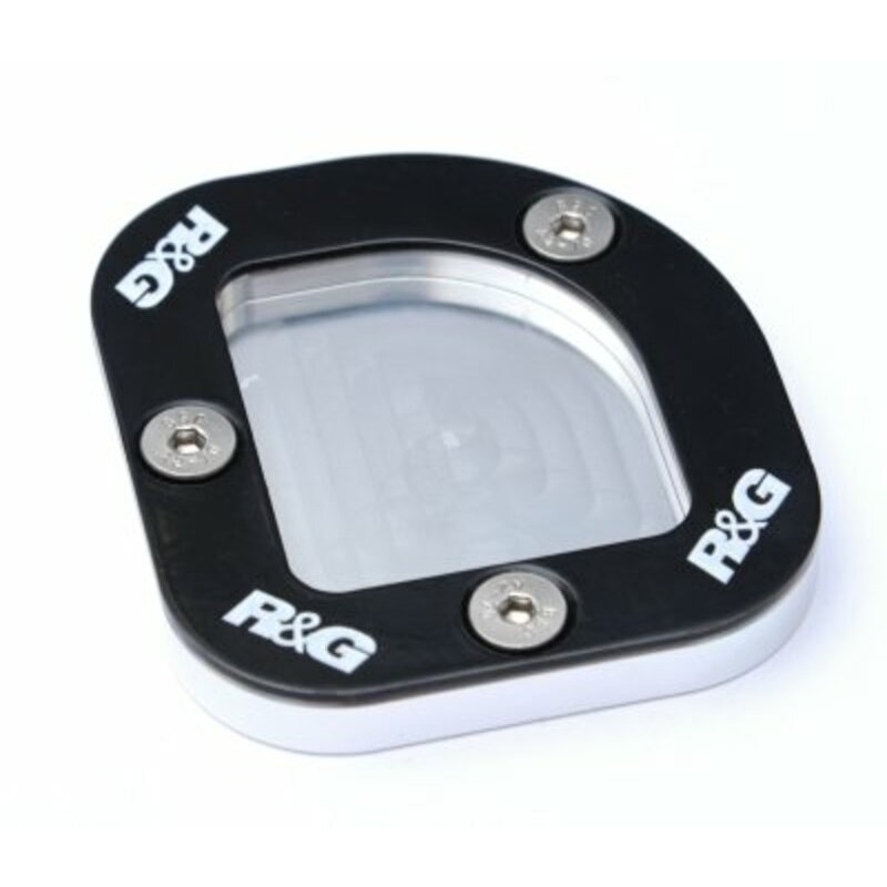 Le patin de béquille latérale R&G permet de doubler la surface au sol de la plateforme de la béquille, et est prévu pour un montage permanent. Il permet de renforcer la stabilité de la moto béquillée, notamment sur terrains non stabilisés.