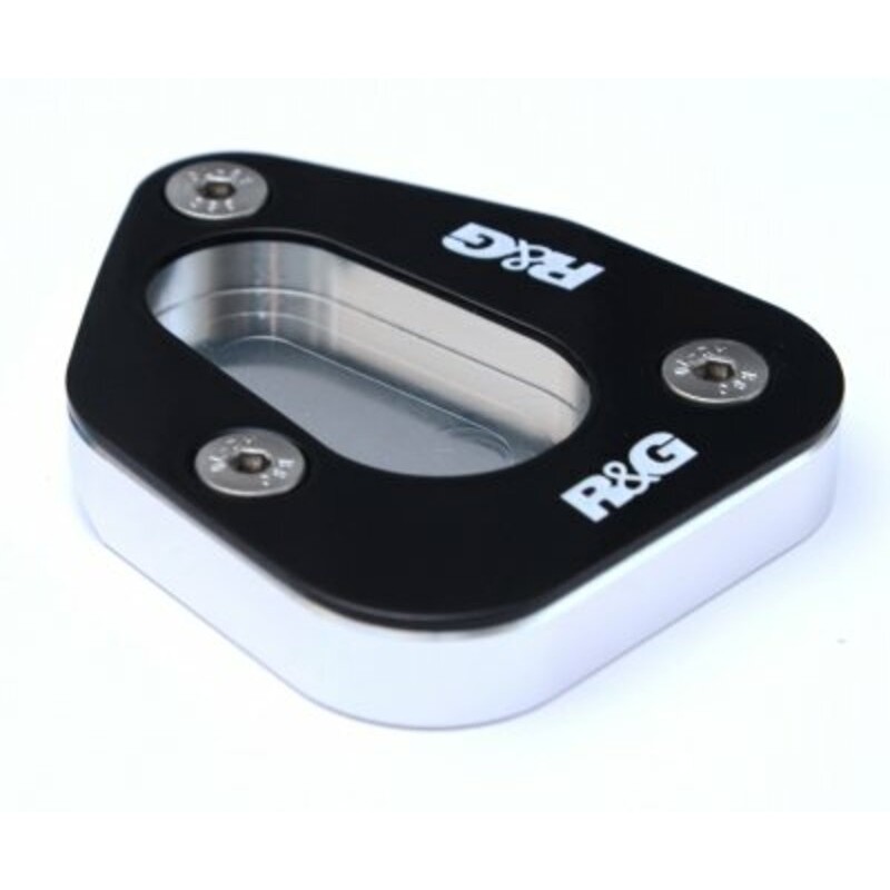 Le patin de béquille latérale R&G permet de doubler la surface au sol de la plateforme de la béquille, et est prévu pour un montage permanent. Il permet de renforcer la stabilité de la moto béquillée, notamment sur terrains non stabilisés.