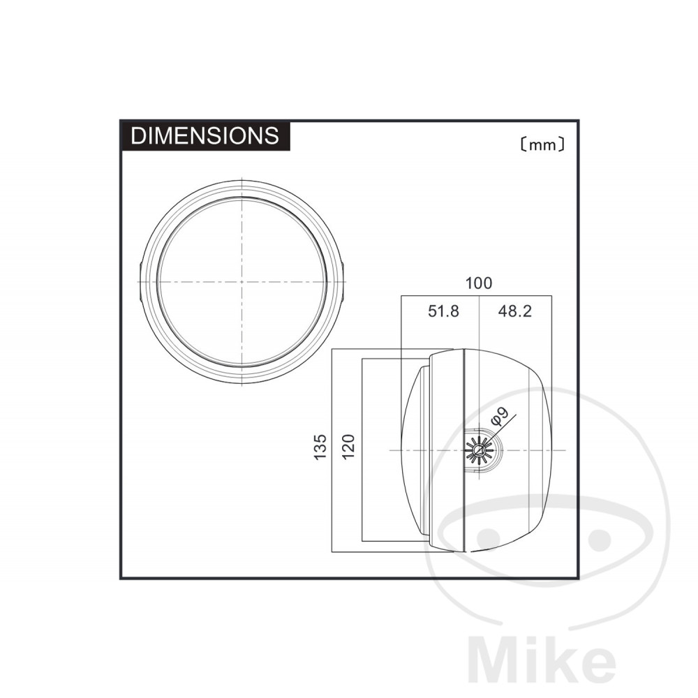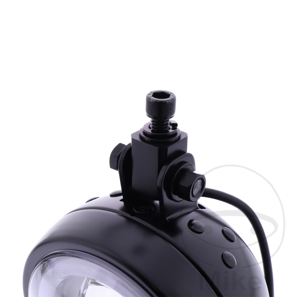 Phare CAPSULE 120 LED noir, 1 point de montage inférieur sur le té de fourche. Boîtier en acier de haute qualité avec lentille de phare compacte de 120mm.