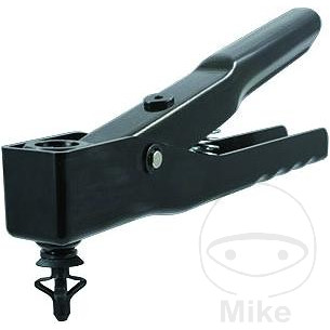 Pince à riveter avec deux embouts buccaux, pour la fixation de rivets en plastique de tailles 5,0 mm et 6,3 mm. Pour toutes les réparations sur des pièces rivetées en plastique, telles que pare-chocs, enjoliveurs de passage de roue (BMW), etc. La tête de rivet pivotée à 90 ° et la conception élancée de cette pince à riveter permettent de poser des rivets en particulier dans les zones étroites et difficiles d’accès. Par exemple, il est facile de riveter dans les passages de roue – en particulier sur certains modèles BMW – sans avoir préalablement démonté les roues. Les enjoliveurs de roue vissés et rouillés peuvent être remplacés rapidement et facilement par des rivets en plastique.