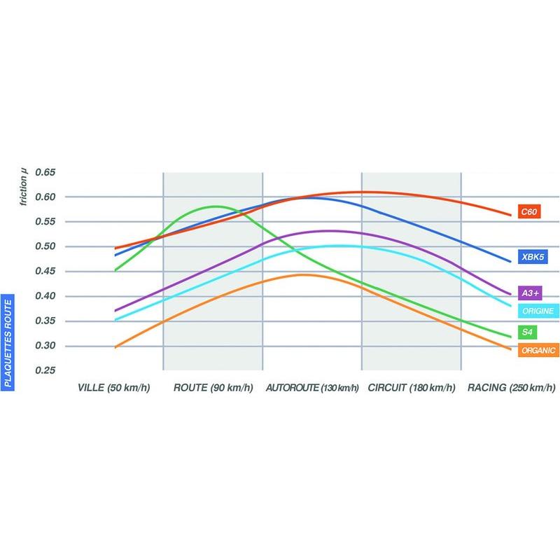 Plaquettes en métal fritté à très haut niveau de performance, développées spécialement pour les motos à vocation sportive. Excellent mordant pour un maximum de réactivité. Puissance de freinage élevée sur sec comme sur mouillé. Résistance au fading très élevée.