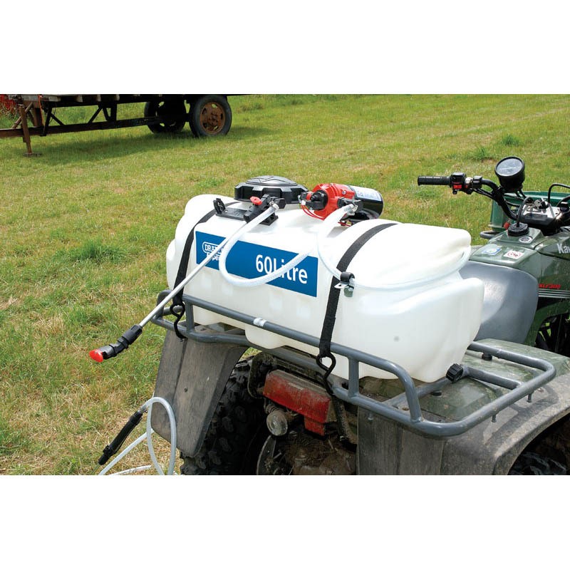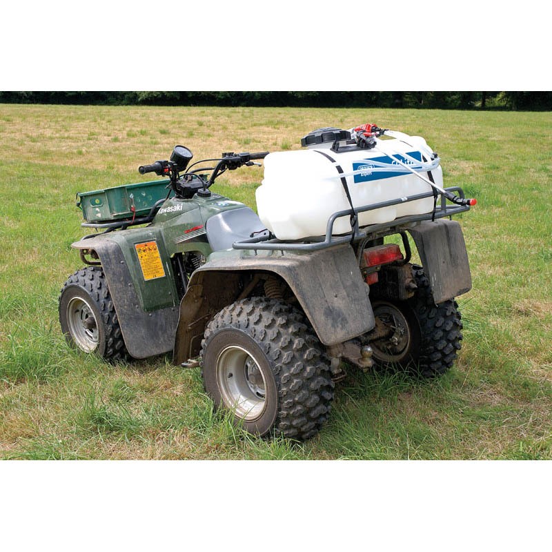 Se monte sur tout véhicule ATV. Livré avec deux lances : l’une fixée au support du réservoir pour la pulvérisation à la volée et l’autre avec une gâchette pour la pulvérisation manuelle. La pompe de pulvérisation est alimentée par une batterie de 12V ou connectée par un moteur électrique de 12V sur le véhicule. La pompe à diaphragme actionnée par pression produit un débit régulier à partir du réservoir. La cuve est fabriquée à partir de polymères spéciaux résistant aux produits chimiques pour une durée de vie extra longue. Elle peut être utilisée pour la pulvérisation d’engrais, de désherbants, de produits de déglaçage et d’éthylène glycol. Livré avec des sangles pour la fixation au véhicule et un interrupteur pour le fonctionnement à distance.