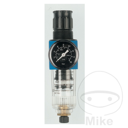 (type membrane) avec purge secondaire (rétroaction). Blocage du réglage par enfoncement du volant. Manomètre montable à l’avant et à l’arrière. Boîtier en zinc moulé sous pression, réservoir en plastique (polycarbonate). Soupapes de purge identiques à celles des filtres.
