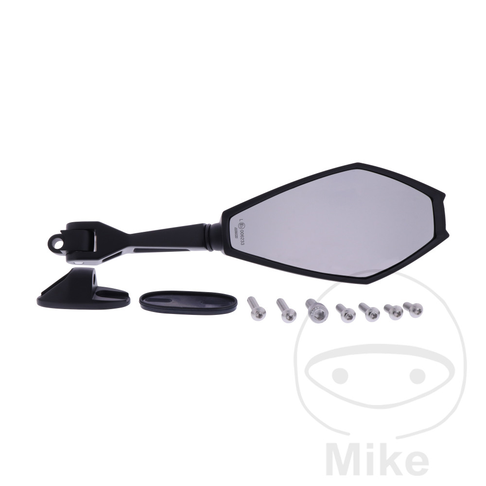 Un rétroviseur latéral « D-Mirror-11 » noir de haute qualité pour le côté droit en version carrée à monter sur le carénage.