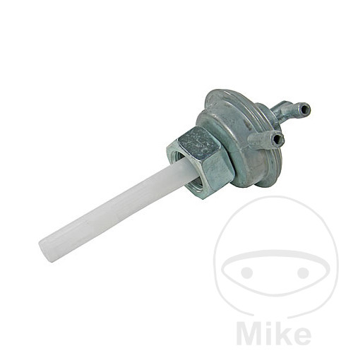 Robinet d’essence à commande par dépression avec raccord à vis pour réservoir métallique. Le préfiltre (petit tube), qui se trouve dans le robinet d’essence, est également compris dans la livraison.