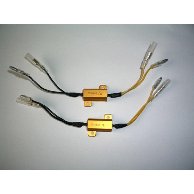 Lors du montage des clignotants LED, des problèmes de fréquence de clignotement peuvent survenir, en fonction du relais du clignotant installé. Ces résistances offrent un remède efficace car elles simulent une puissance d’environ 17,5 watts à 12 V.