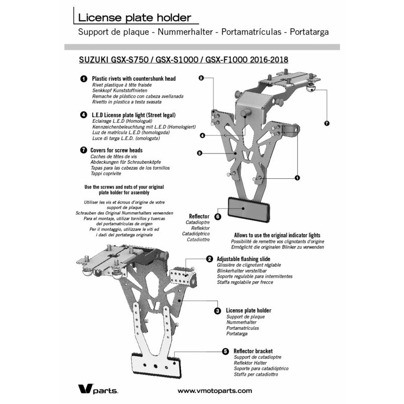 Support de plaque V PARTS noir Suzuki GSX-S750/1000