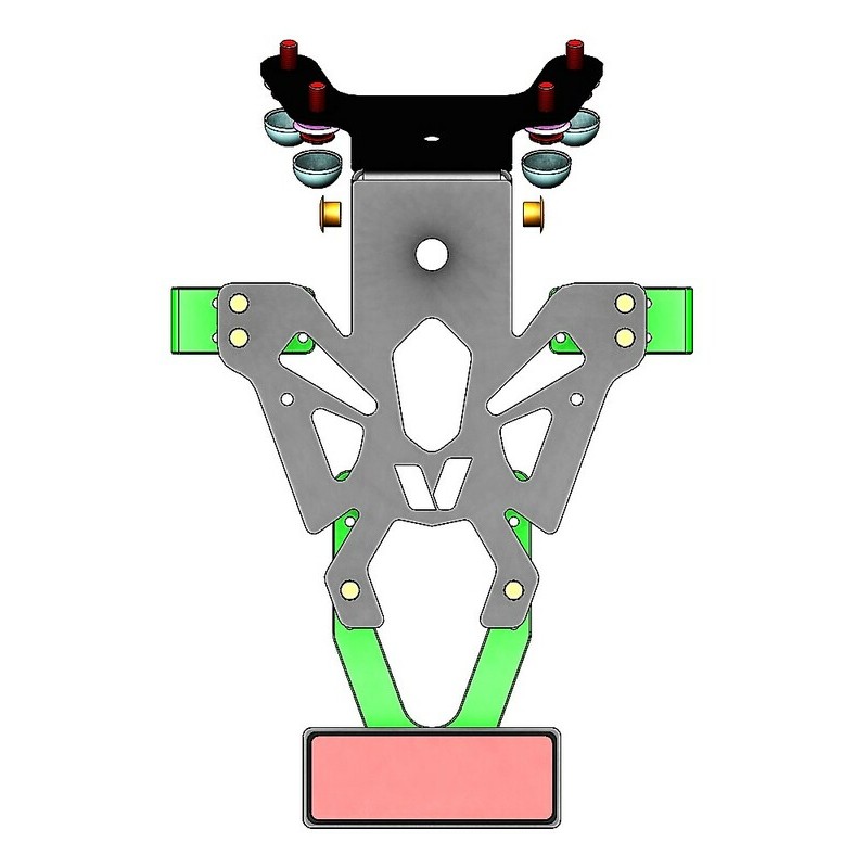 - Permet la fixation de la plaque d’immatriculation, clignotants et éclairage de plaque.