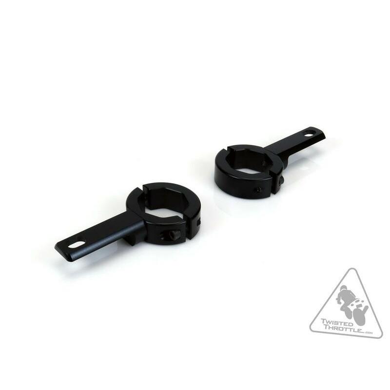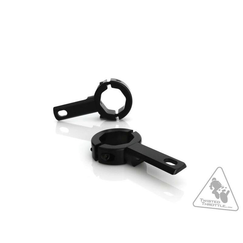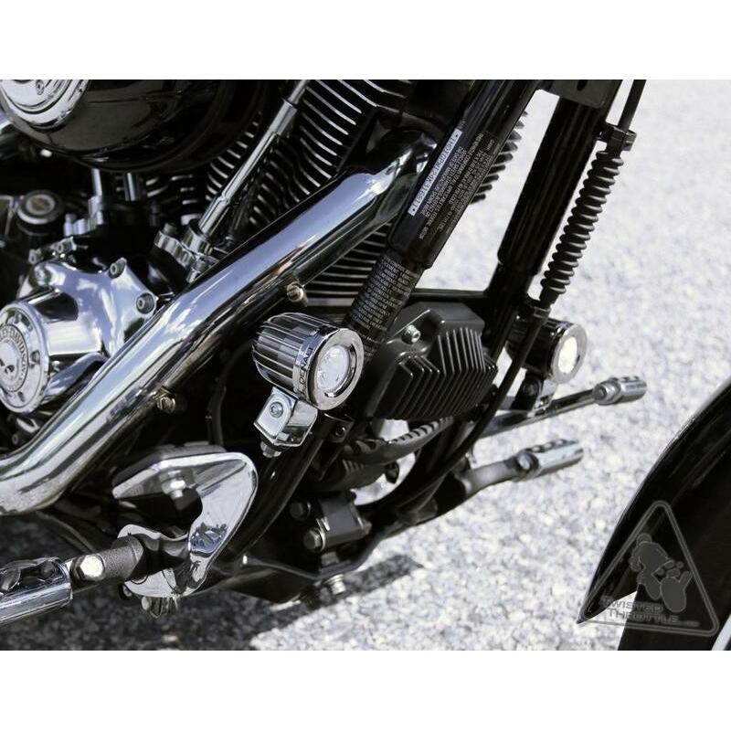 Ces brides sont destinées au montage des éclairages sur les protections moteur d’origine ou de remplacement que l’on trouve couramment sur les cruisers et les motos standard. Les brides permettent de positionner la lumière à l’intérieur des protections moteur, assurant ainsi une protection en cas de chute. Les brides sont également parfaitement dimensionnées pour s’adapter aux tubes du cadre afin d’obtenir une installation propre et peu encombrante.