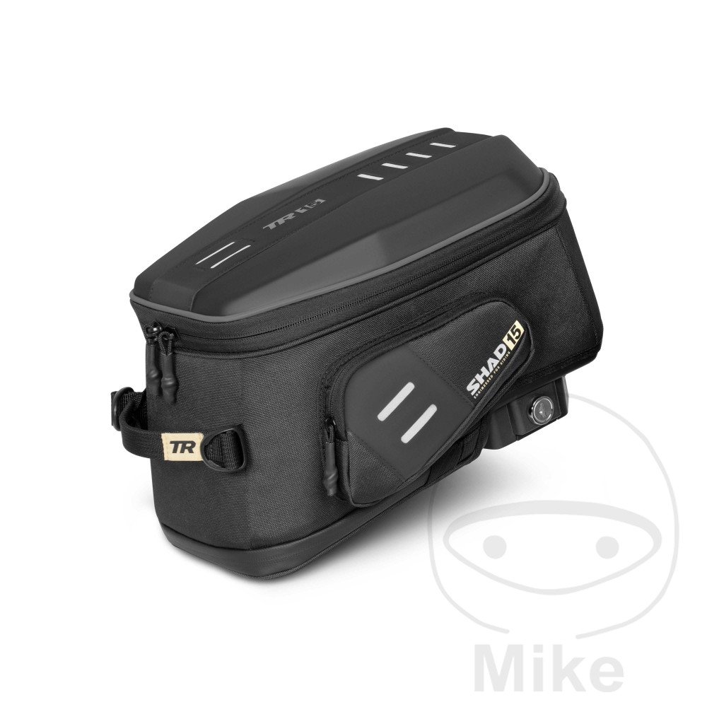 Permet une meilleure adaptation au réservoir de la moto grâce à sa poche extensible. Le système à clic permet en outre un réglage dans deux positions différentes.
